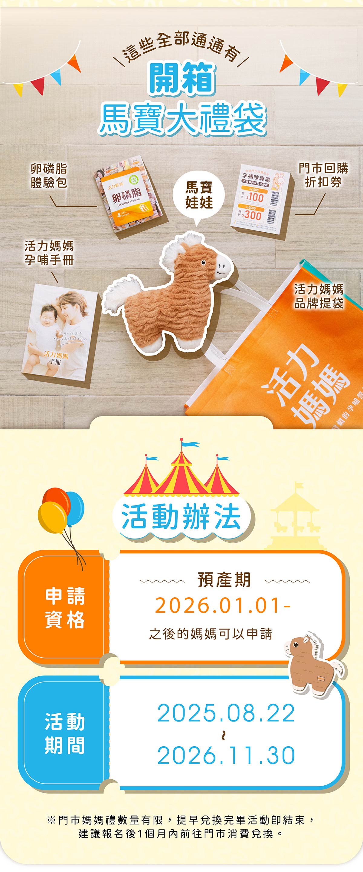 参加對象: 預產期2026/1/1後的馬寶寶媽咪
