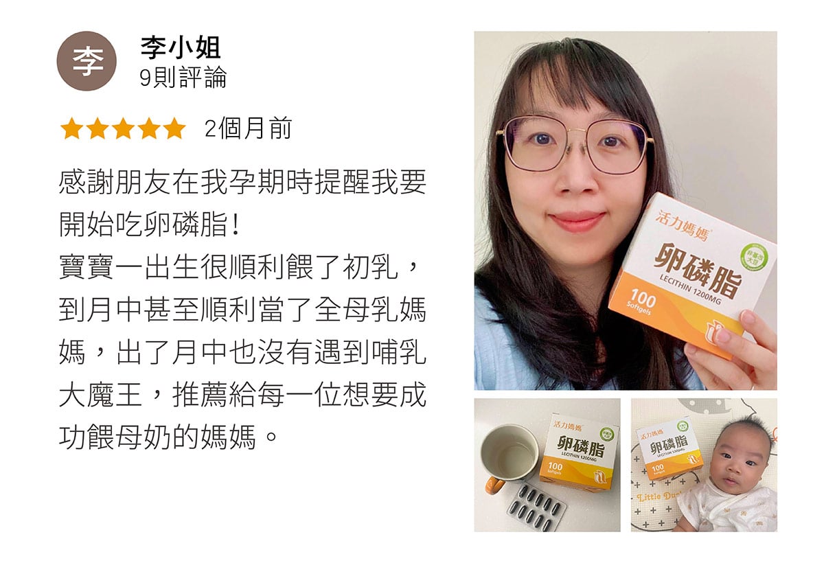 多虧了活力媽媽的卵磷脂,讓我在整個哺乳期都能順利親餵寶貝兒子XD