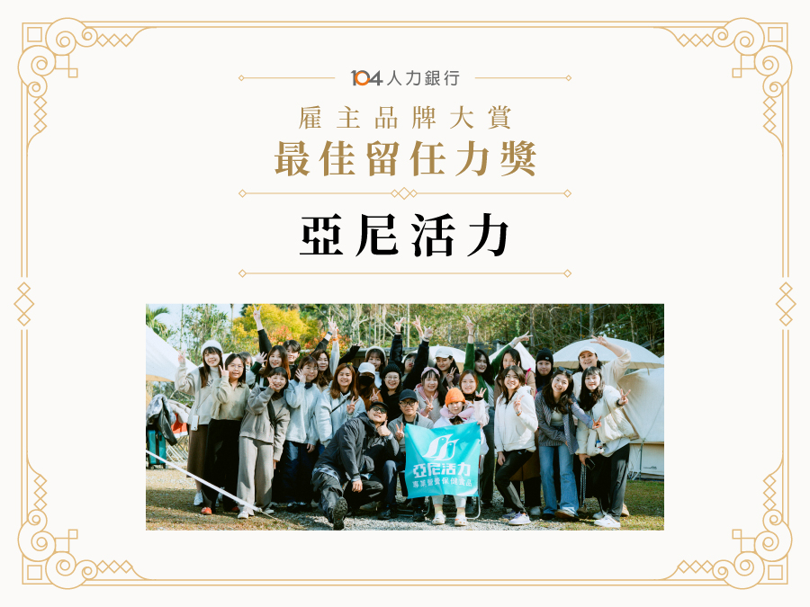 【狂賀!】亞尼活力榮獲「104雇主品牌大賞 最佳留任力獎」