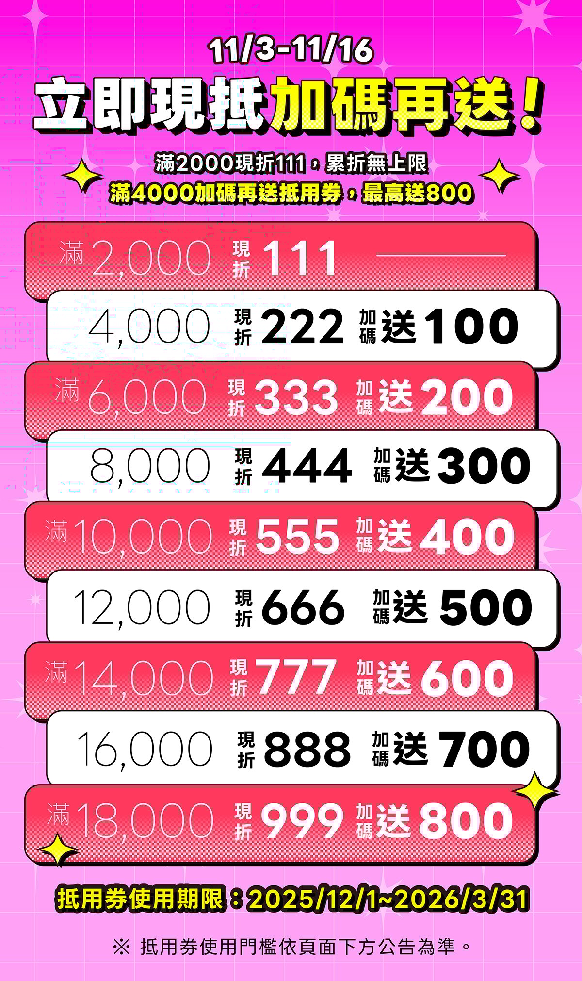 ※ 抵用券使用期限為:「2025/12/1-2026/3/31」。
