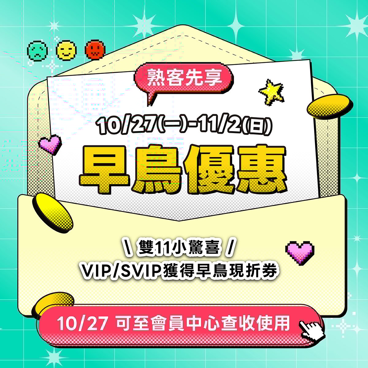 ※ 會員資格認定為10/24發送當天的VIP及SVIP。