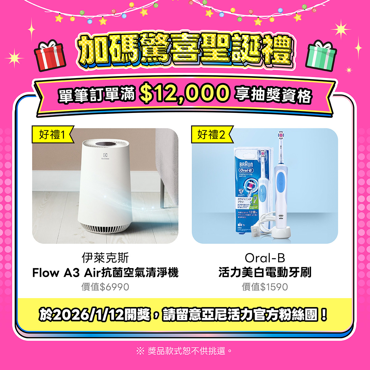 12/1-12/31單筆訂單金額滿 $12,000 即享抽獎資格