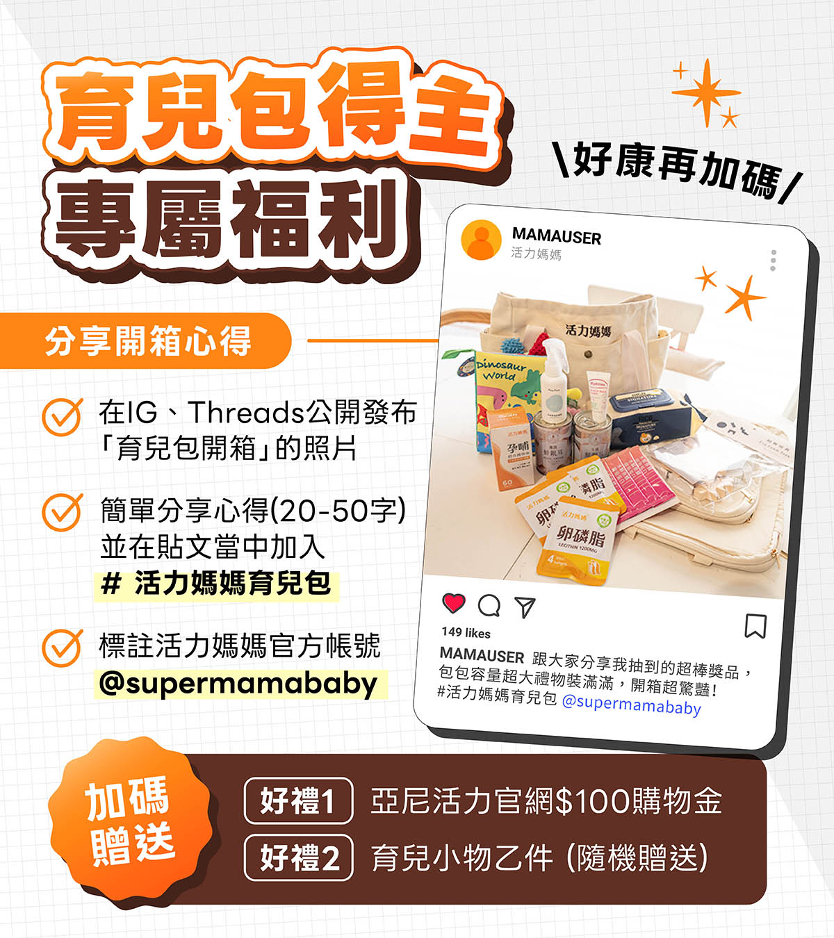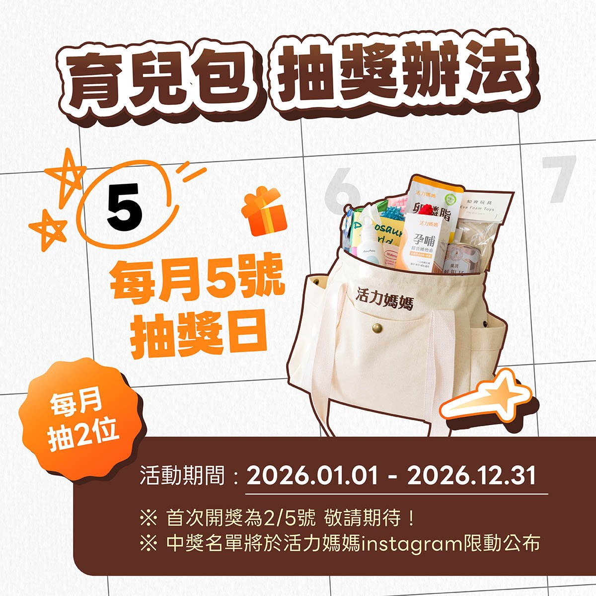 【2026 媽媽禮】活力媽媽月月抽 ! 超值育兒包等你抽