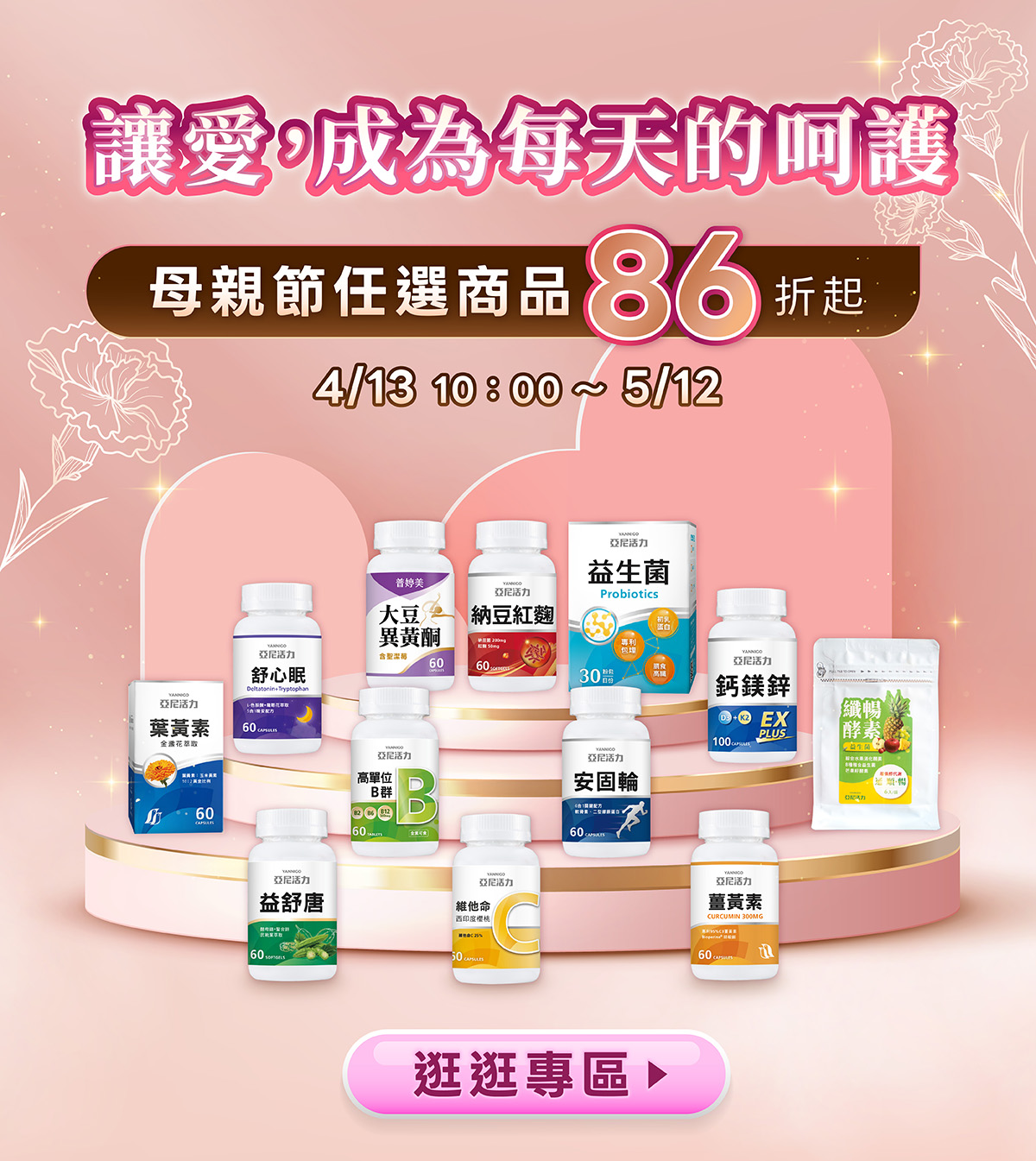 4/13-5/12【亞尼活力母親節優惠】每位媽媽都值得寵愛
