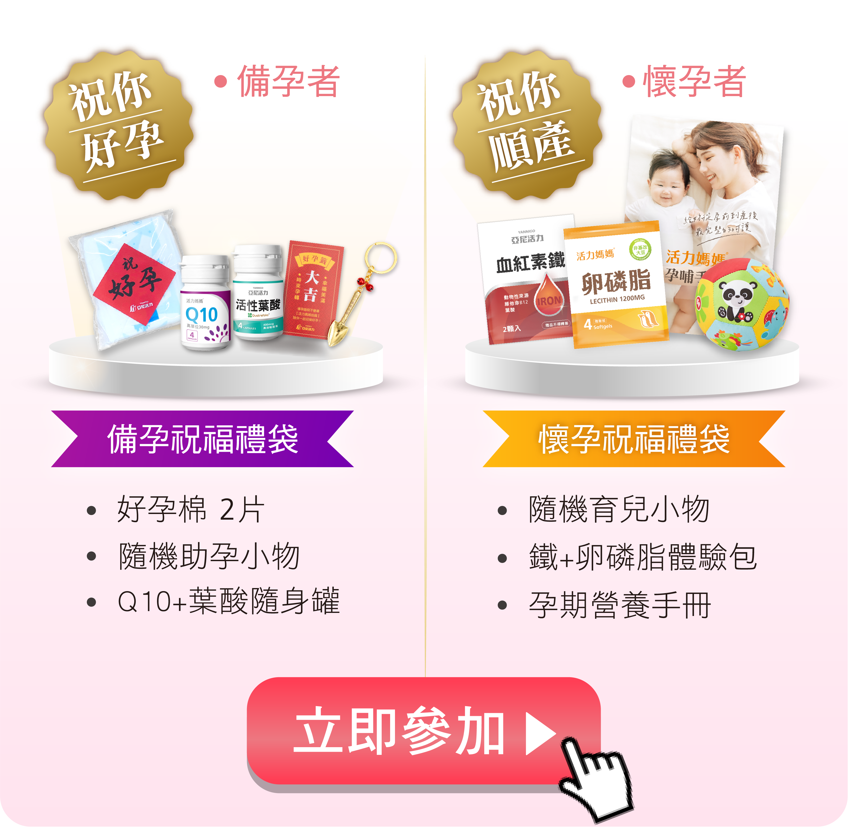 參加活動可獲得 : 備孕祝福禮袋 / 懷孕祝福禮袋 (擇一,詳情請洽LINE客服)