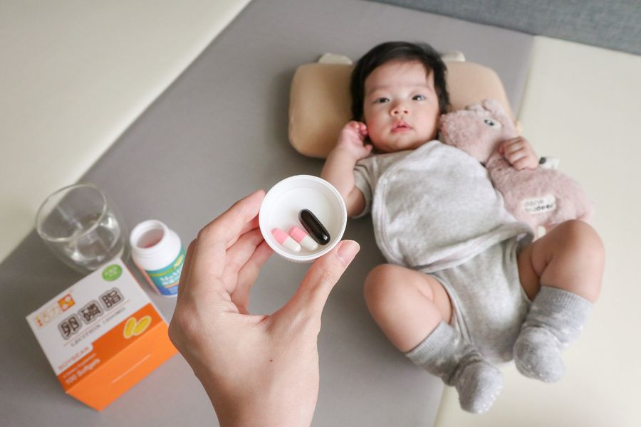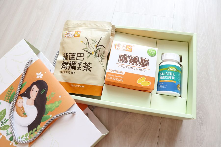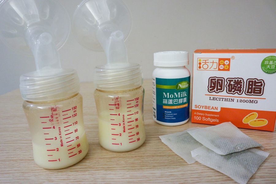親餵或擠奶前半小時左右,她每天會吃1~2顆活力媽媽卵磷脂+葫蘆巴膠囊。