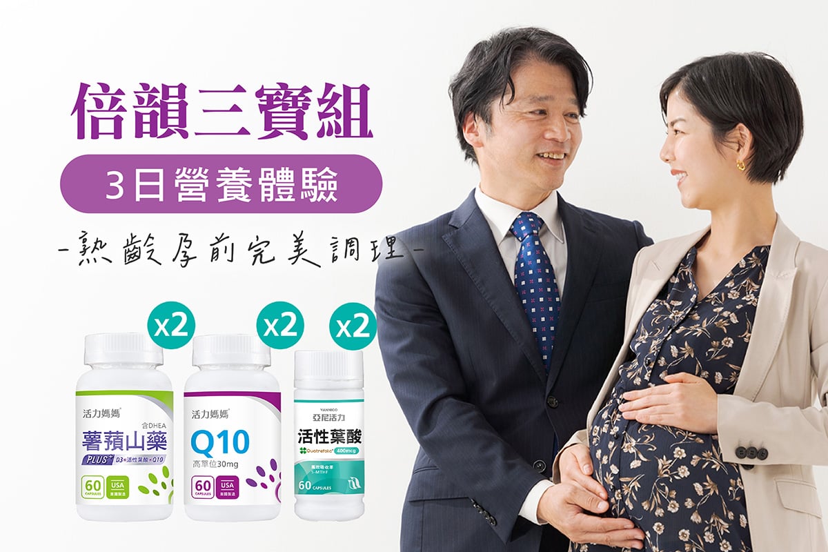 於亞尼活力官網註冊會員,進入報名頁面填寫完整資料以及付款,即可獲得倍韻三寶組3日孕前體驗組。
