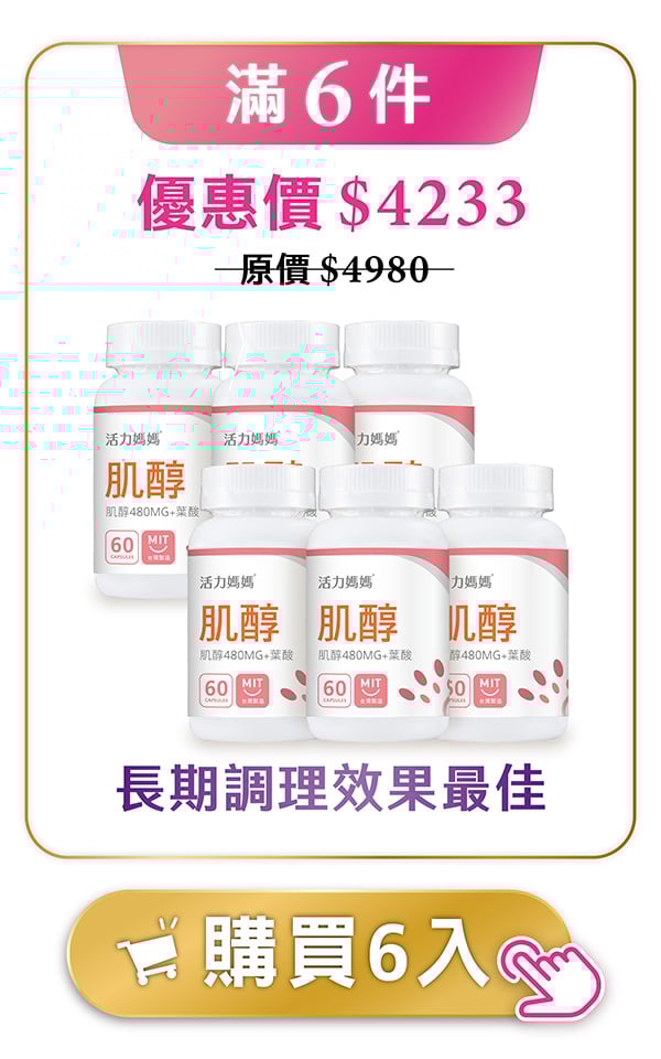 一般體質建議每日一次補充2顆倍韻肌醇+葉酸。