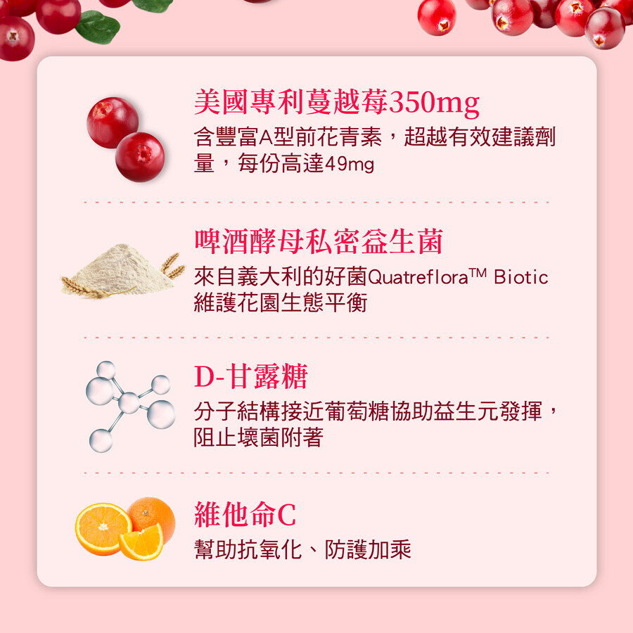 蔓越莓 X 啤酒酵母益生菌 X D-甘露糖