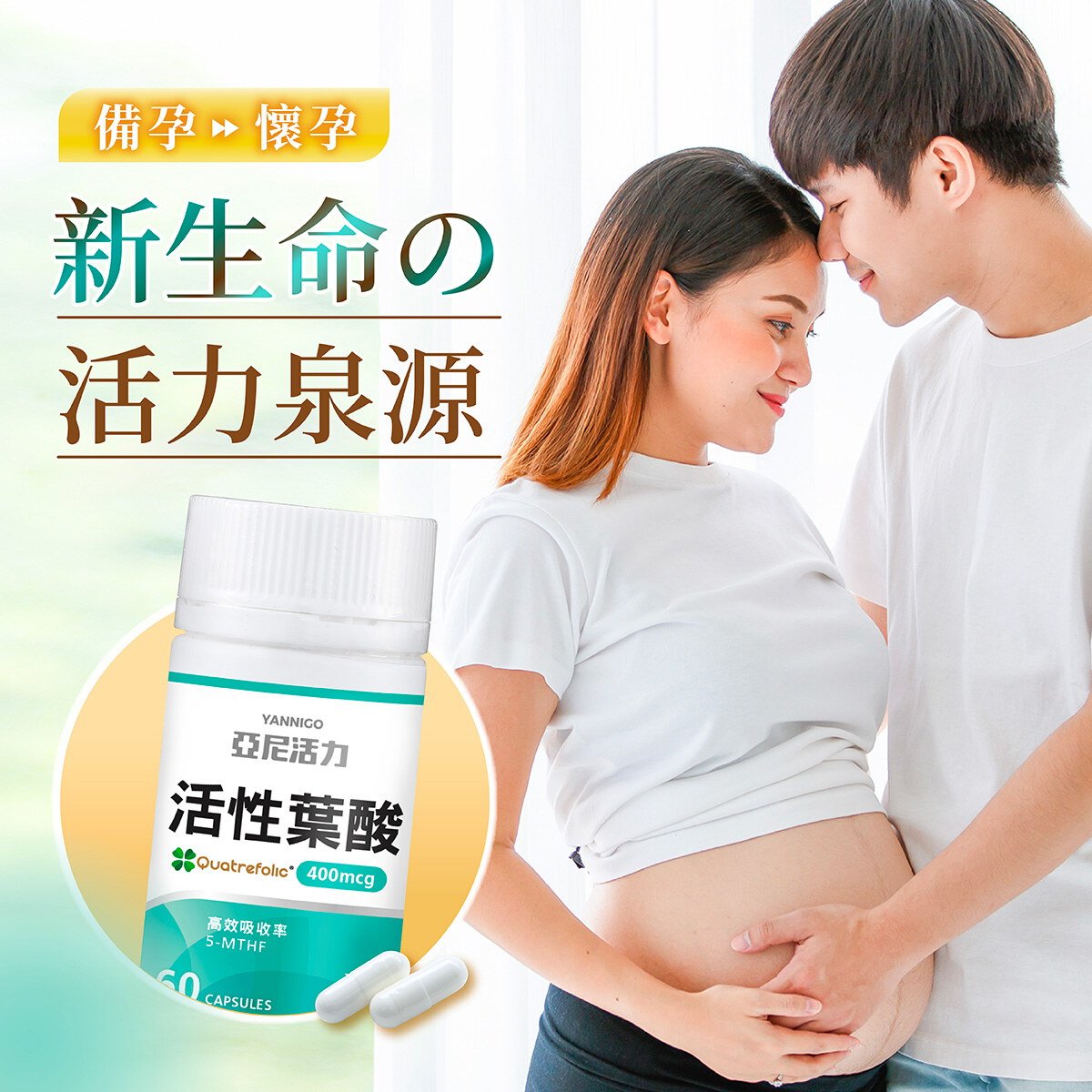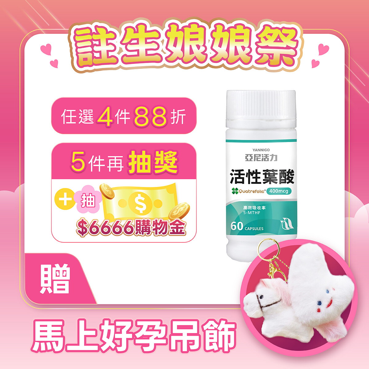 亞尼活力活性葉酸配方升級,一顆除了含有400mcg的活性葉酸,另添加40mg的維他命C能提升活性葉酸的利用率。
