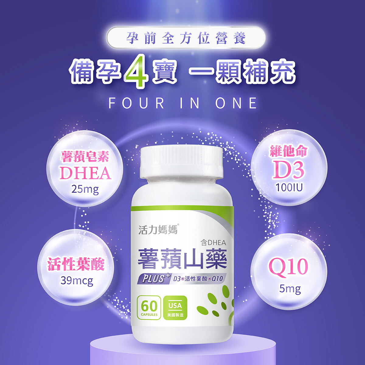 倍韻薯蕷山藥膠囊PLUS成分升級,添加獨家複方d3、q10、活性葉酸,提供更全面備孕營養素。