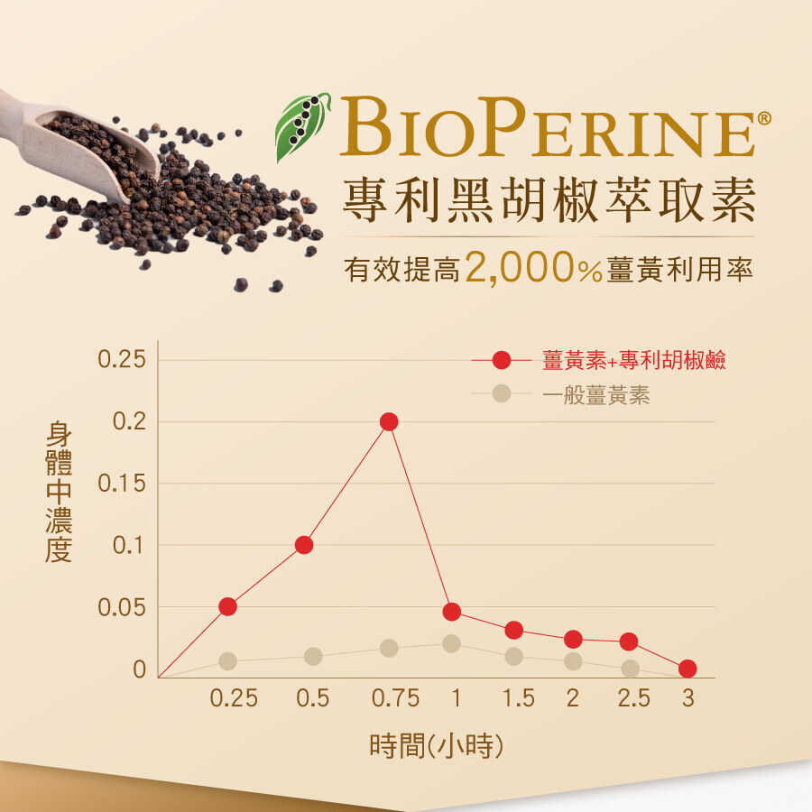 ■ 高純度薑黃素+胡椒鹼=吸收率