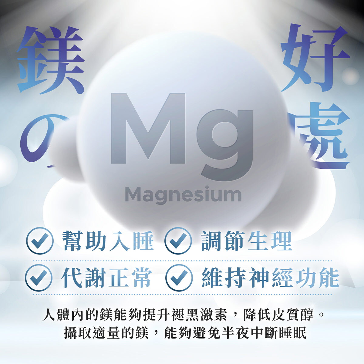 由於甘胺酸鎂的鎂濃度僅10%,為了達到更有效的鎂補充,我們特別加入了氧化鎂,將其與甘胺酸鎂結合,形成螯合鎂的優質配方,這樣不僅能提升鎂的吸收效果,還能最大化其健康效益。